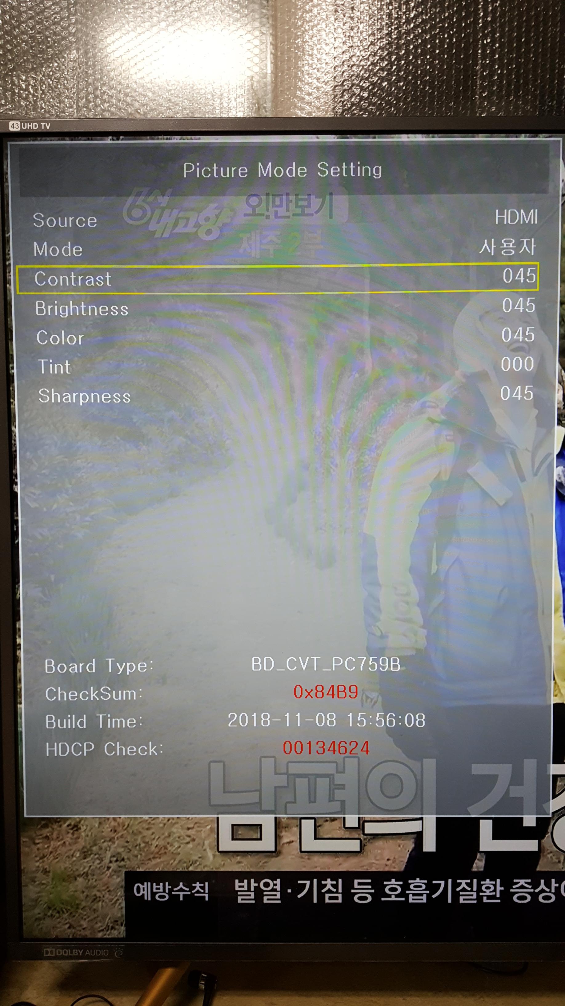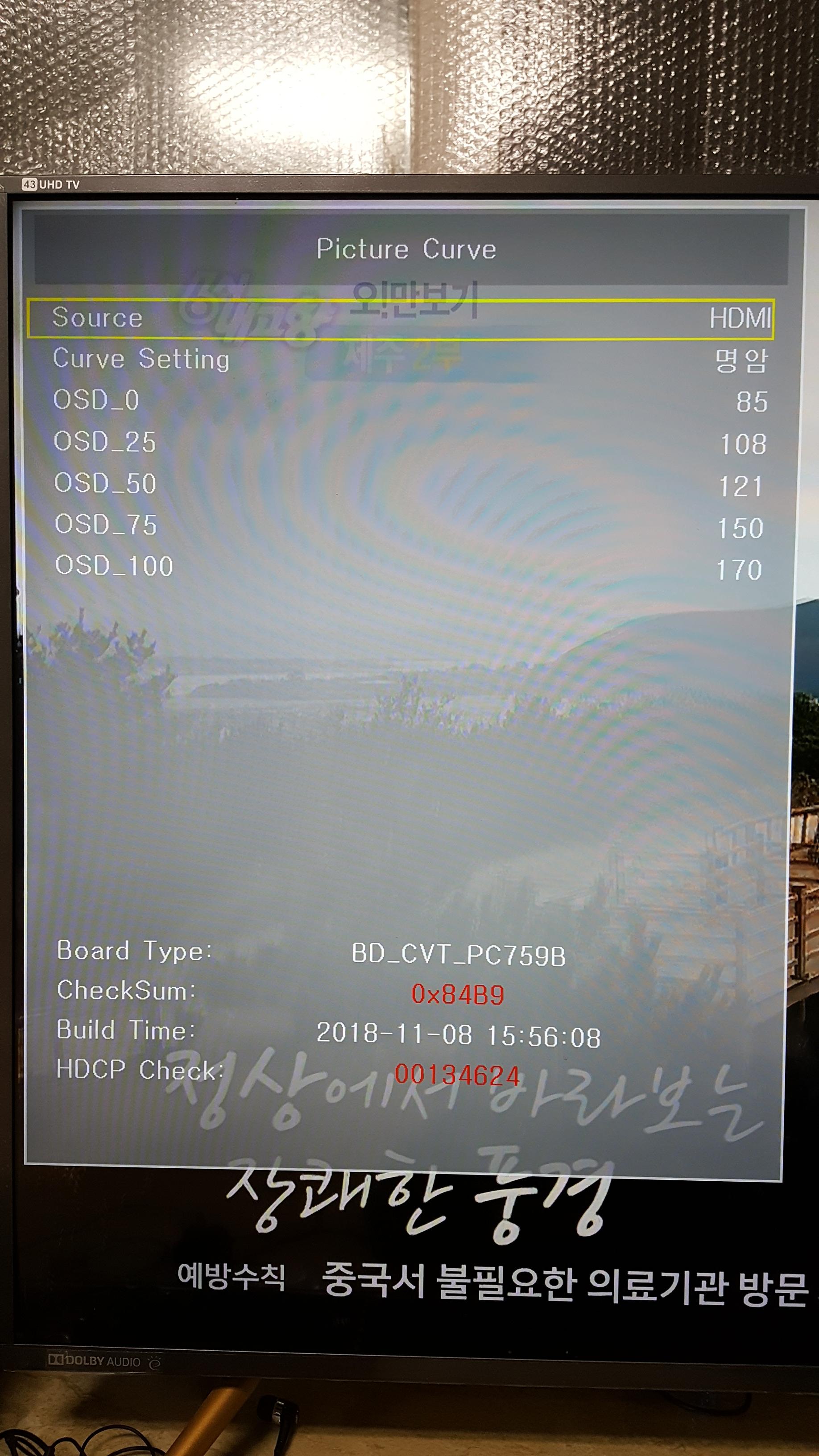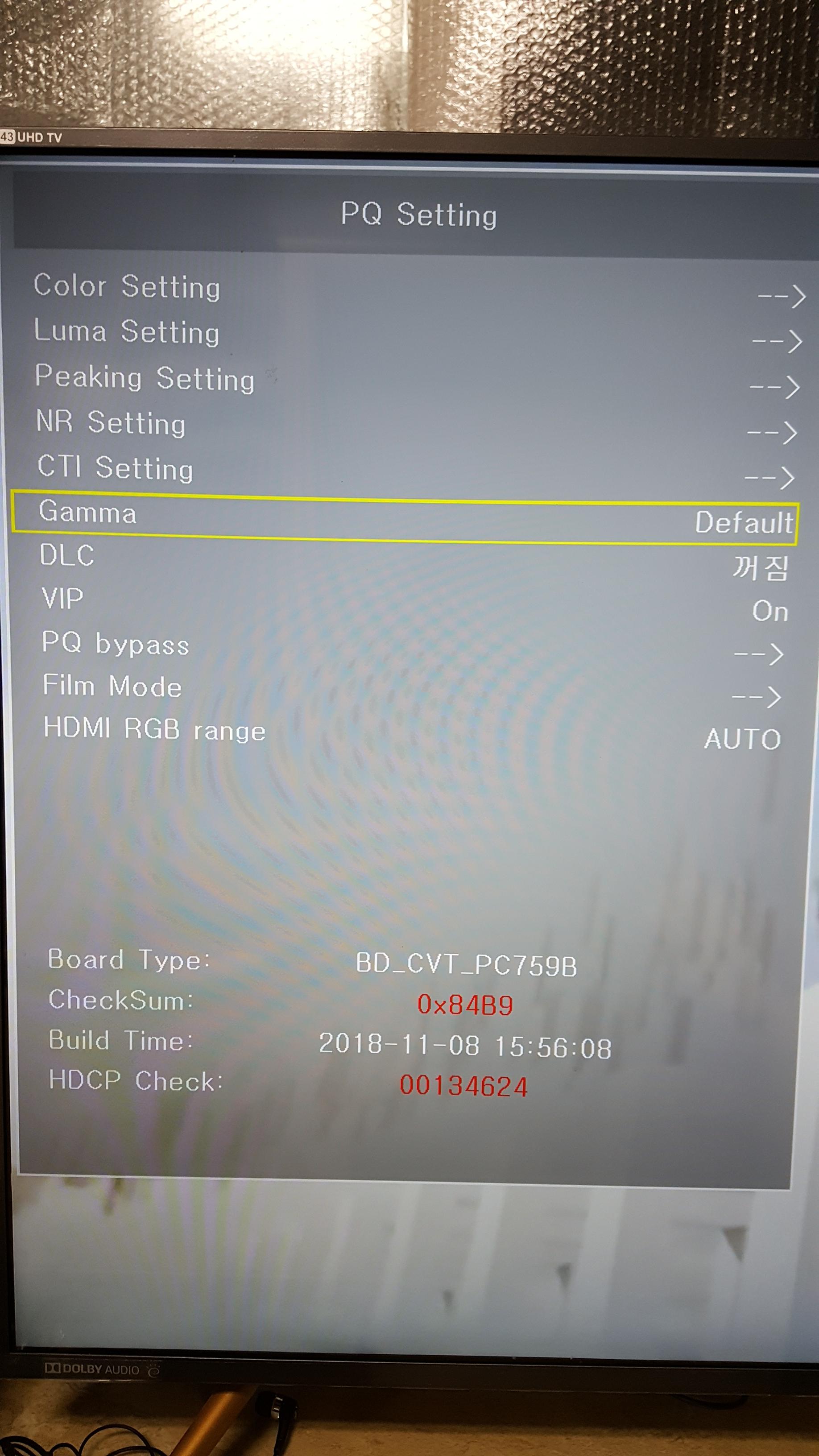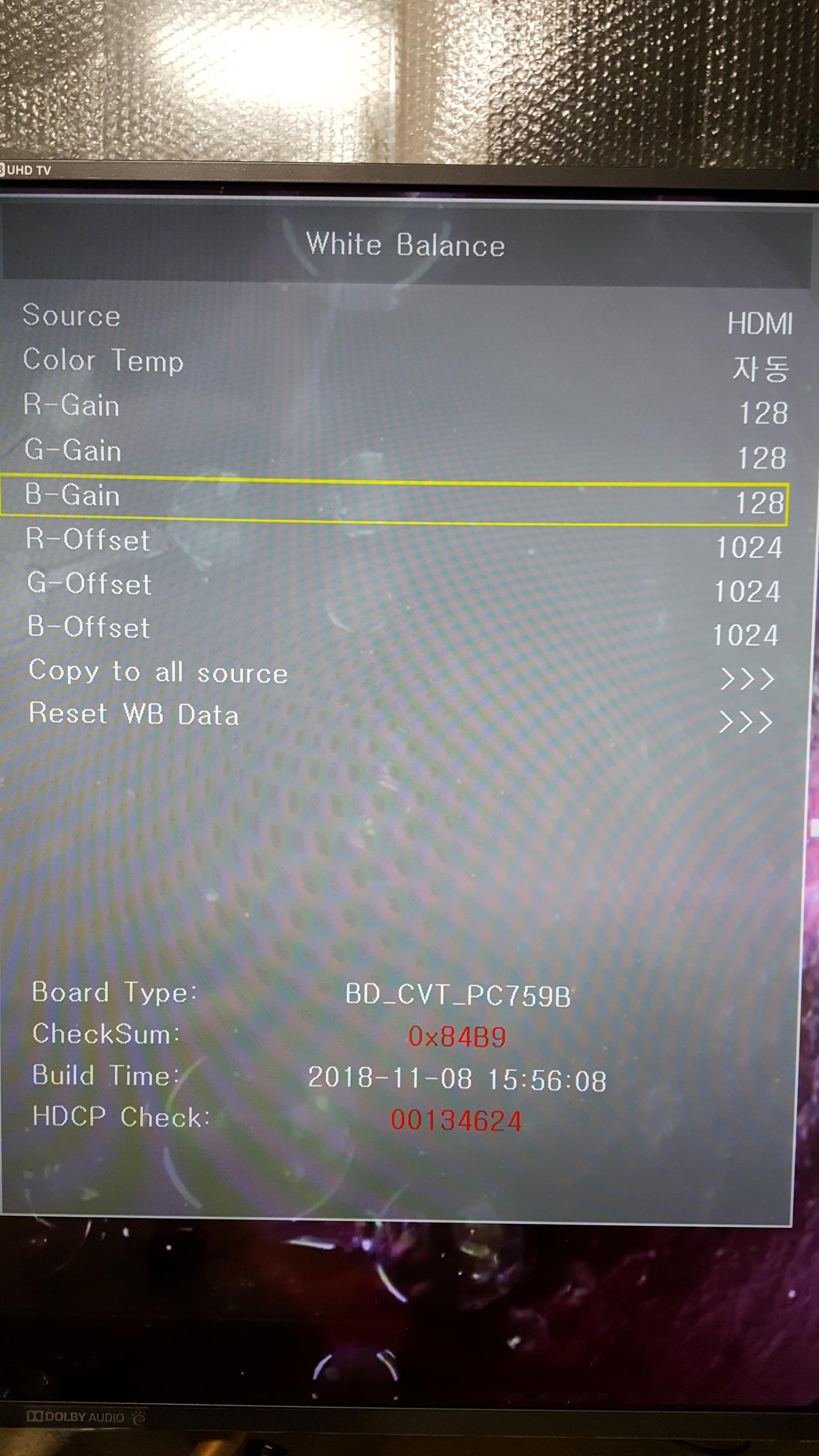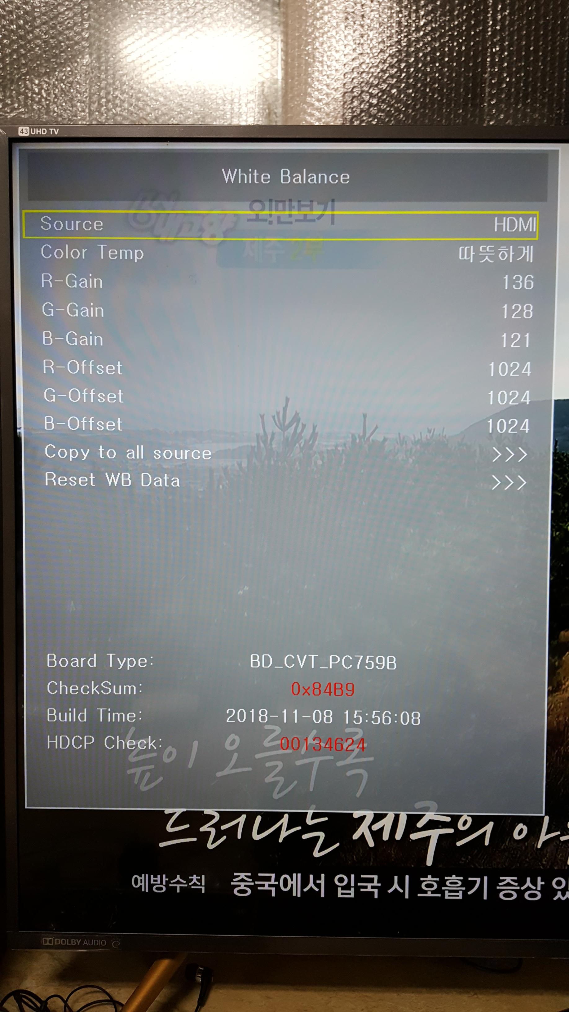 DSPV사 K430UHD TV 공장 초기값 RGB 색보정값입니다.